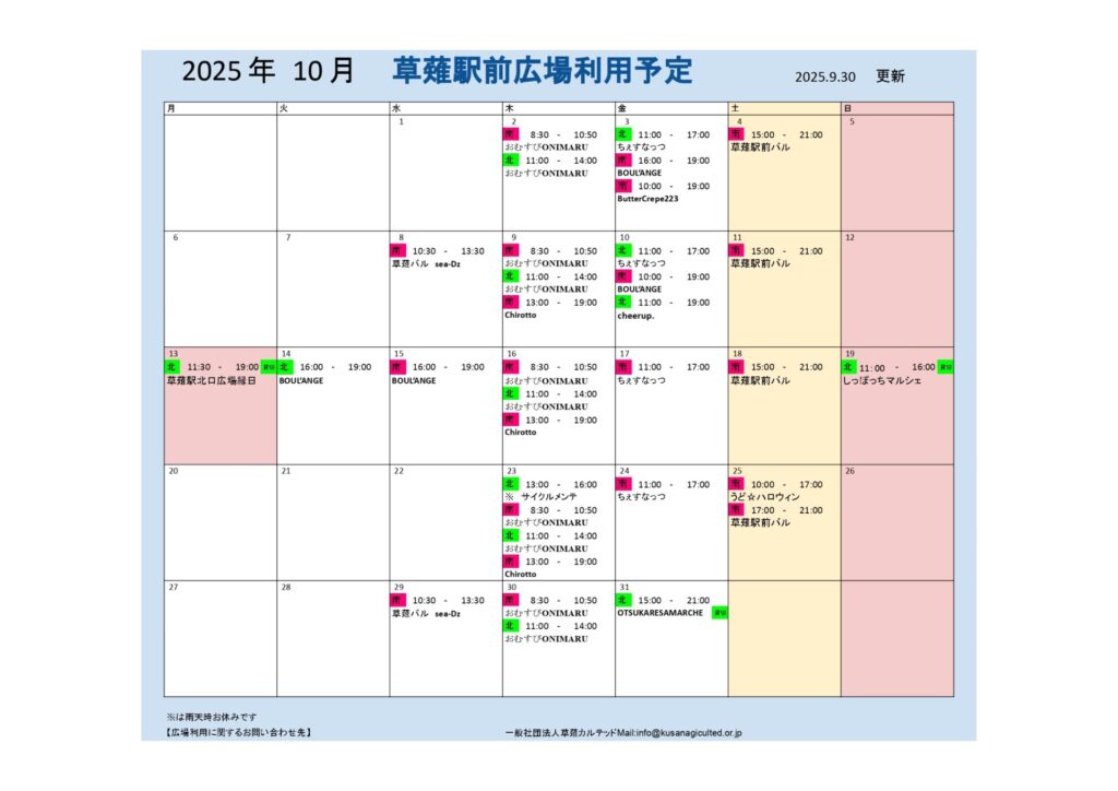 10月の広場の利用予定表はこちらです。