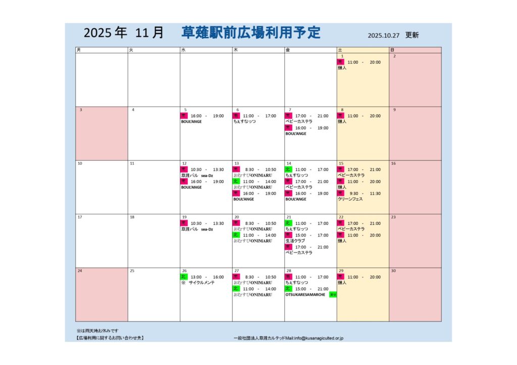 11月の広場の利用予定表はこちらです。