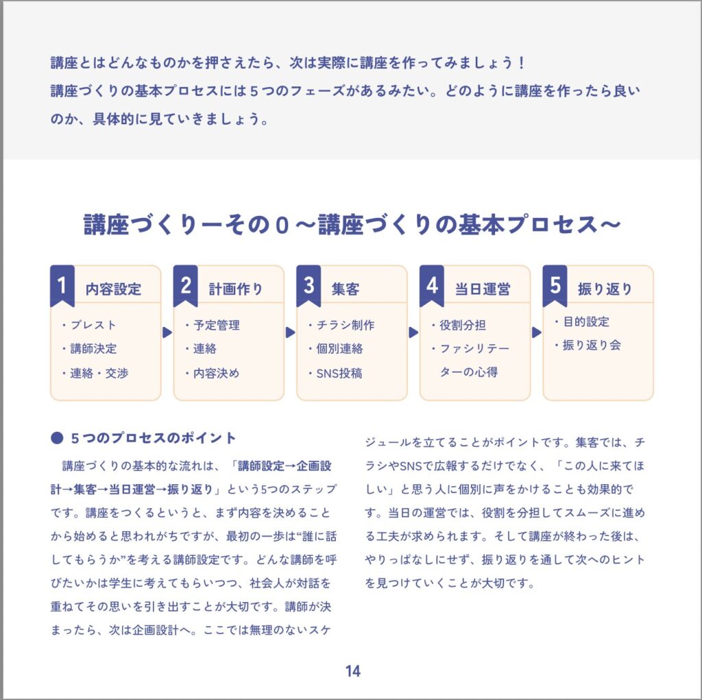 「講座」づくりに焦点を当てました。